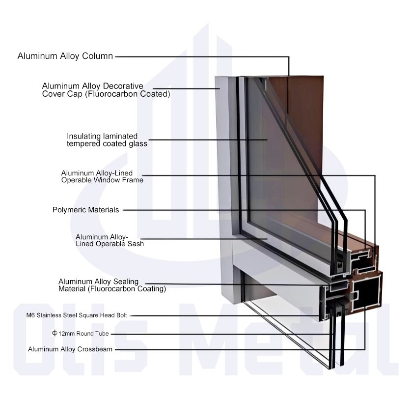 The Aluminum-Plastic Co-Extrusion structure adopts a composite and modular energy-saving design concept. It uses aluminum alloy profiles as the base material, and a layer of micro-foamed PVC material is coated on the surface through an extrusion micro-foaming process. The two materials are tightly combined through high-temperature extrusion, forming a new high-efficiency composite profile with outstanding structural stability and thermal performance. This unique structure lays a solid foundation for the excellent performance of Aluminum-Plastic Co-Extrusion Curtain Wall.