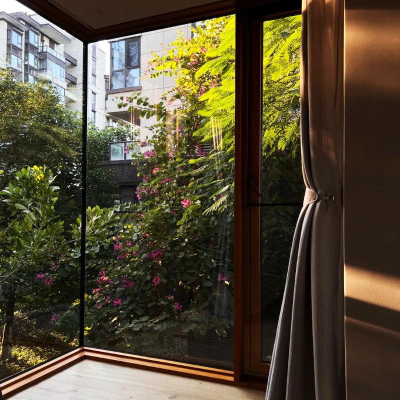 This series is equipped with standard three-glass two-cavity inert gas insulating glass, which greatly weakens the heat radiation and heat conduction of the glass part, extremely reduces the heat loss of the window, and consolidates the product’s ultra-high energy efficiency performance. It achieves constant temperature thermal insulation and extreme energy saving in all seasons, maximally reduces the design load and operation energy consumption of the building HVAC system, and perfectly meets the core requirements of passive house ultra-low energy consumption. It also balances the glass surface temperature to fundamentally solve the problem of glass condensation, and cooperates with the overall system design to realize no cold bridge and no condensation on the full section of the window. Full-parameter customized development is supported, with full-process technical docking, thermal performance simulation calculation, parameter testing and certification, and green building certification assistance services provided.