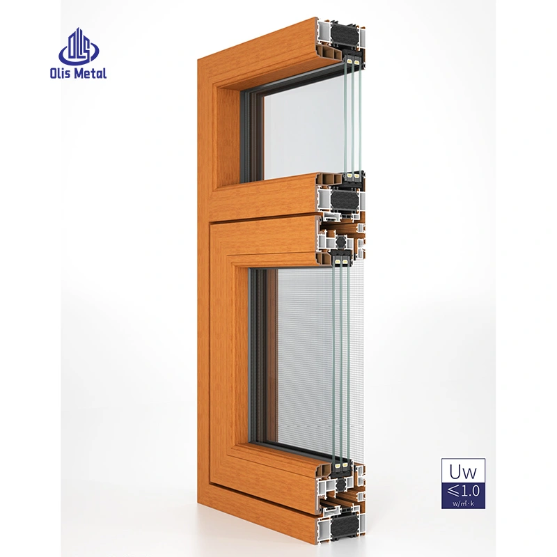Wood Grain Thermally Insulated Aluminum-Plastic Co-Extruded Hurricane Impact tilt-and-turn Windows
